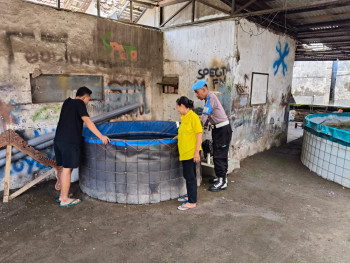 Bhabinkamtibmas Desa Wadungasri Cek Budidaya Ikan...